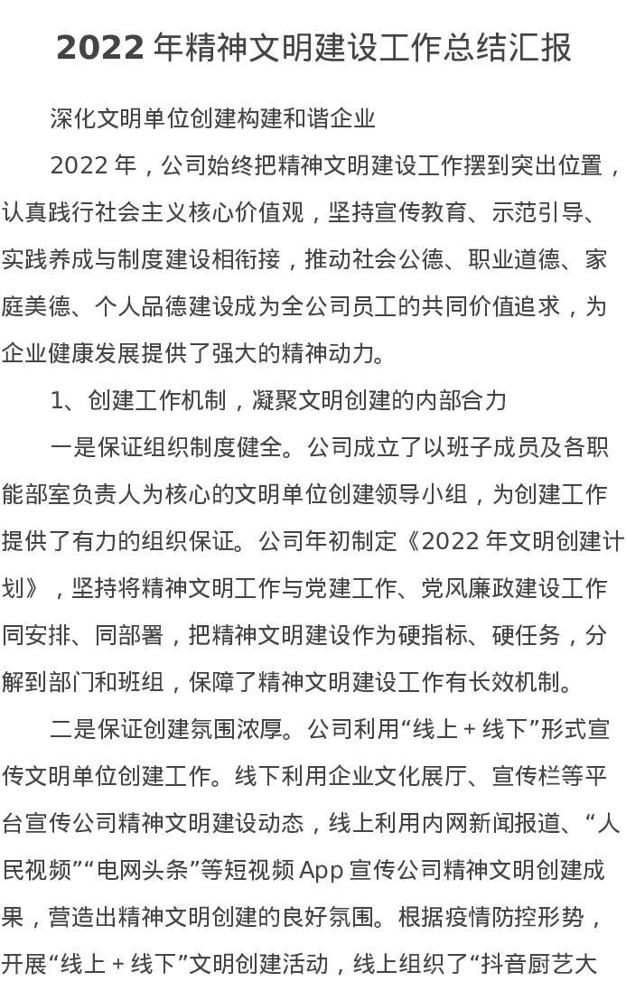2022年精神文明建设工作总结汇报