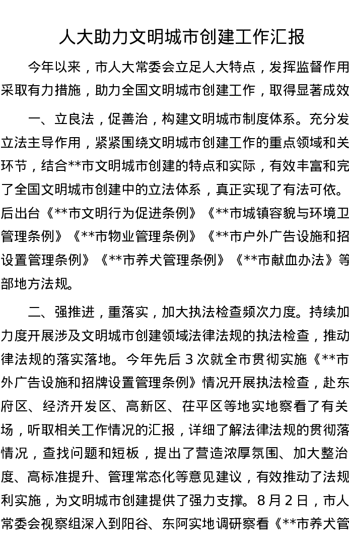 人大助力文明城市创建工作汇报