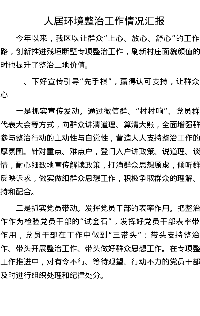 人居环境整治工作情况汇报