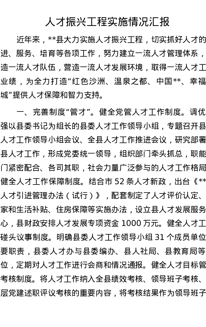 人才振兴工程实施情况汇报