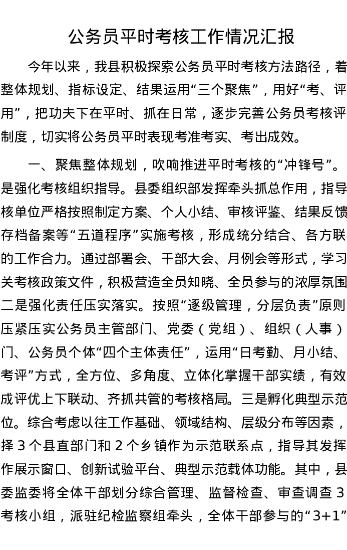 公务员平时考核工作情况汇报