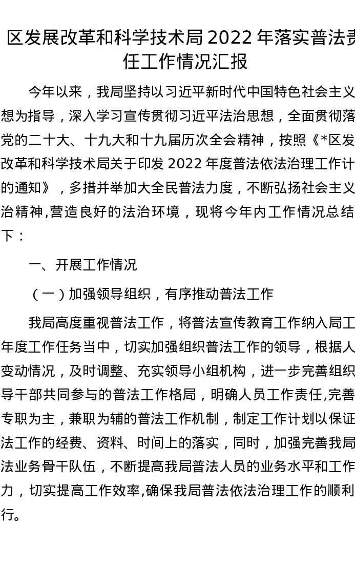 区发展改革和科学技术局2022年落实普法责任工作情况汇报