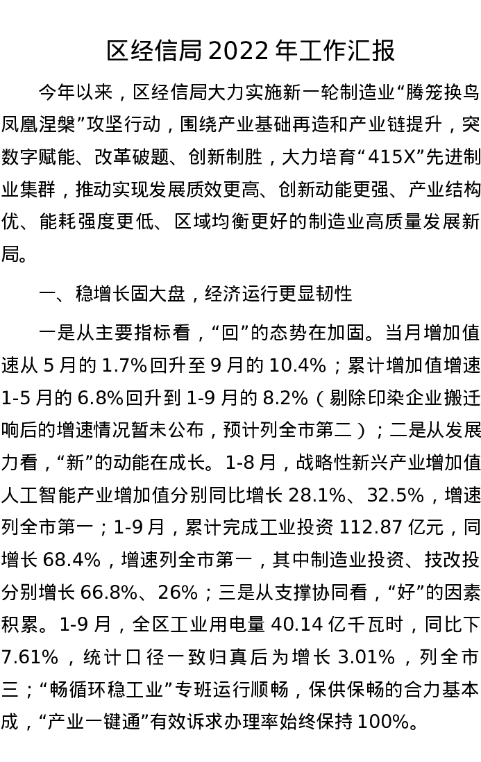 区经信局2022年工作汇报