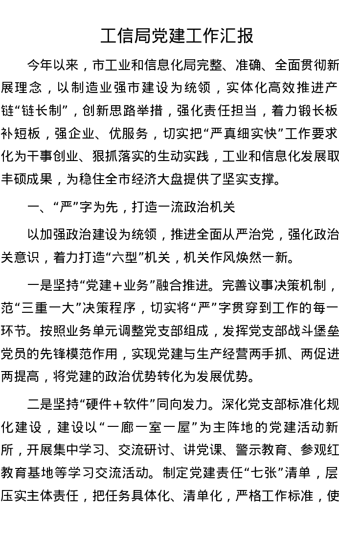 工信局党建工作汇报
