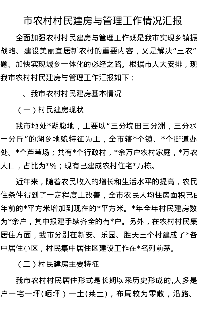 市农村村民建房与管理工作情况汇报