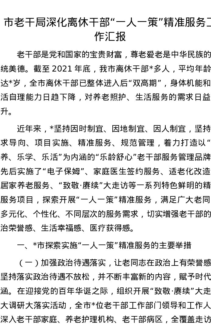 市老干局深化离休干部“一人一策”精准服务工作汇报