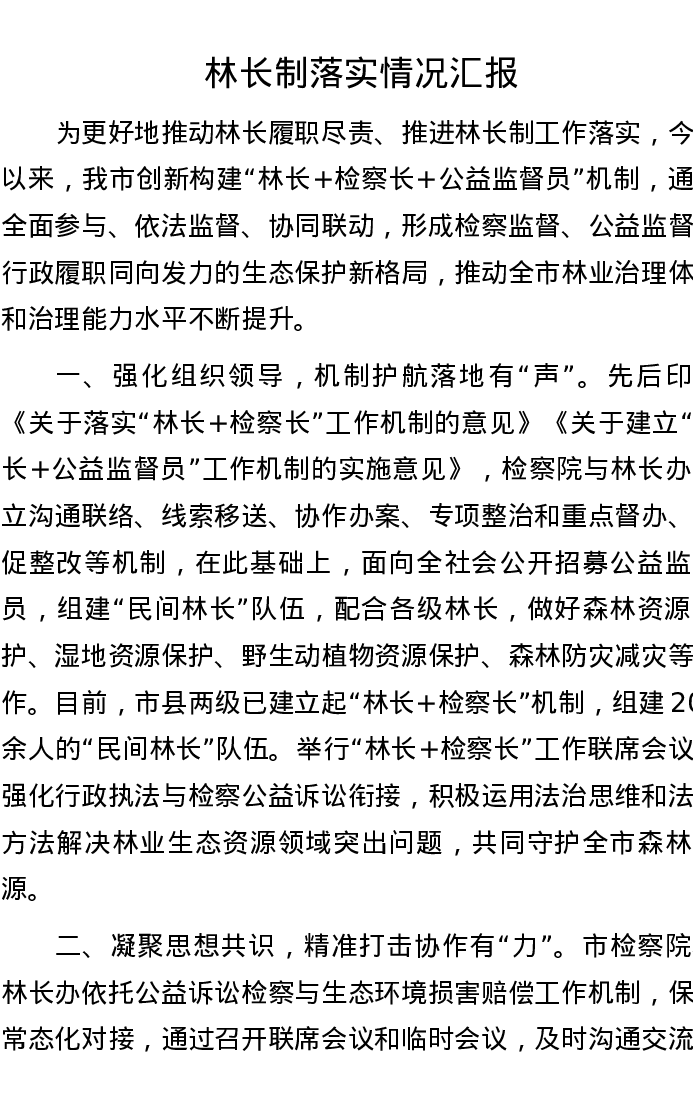 林长制落实情况汇报