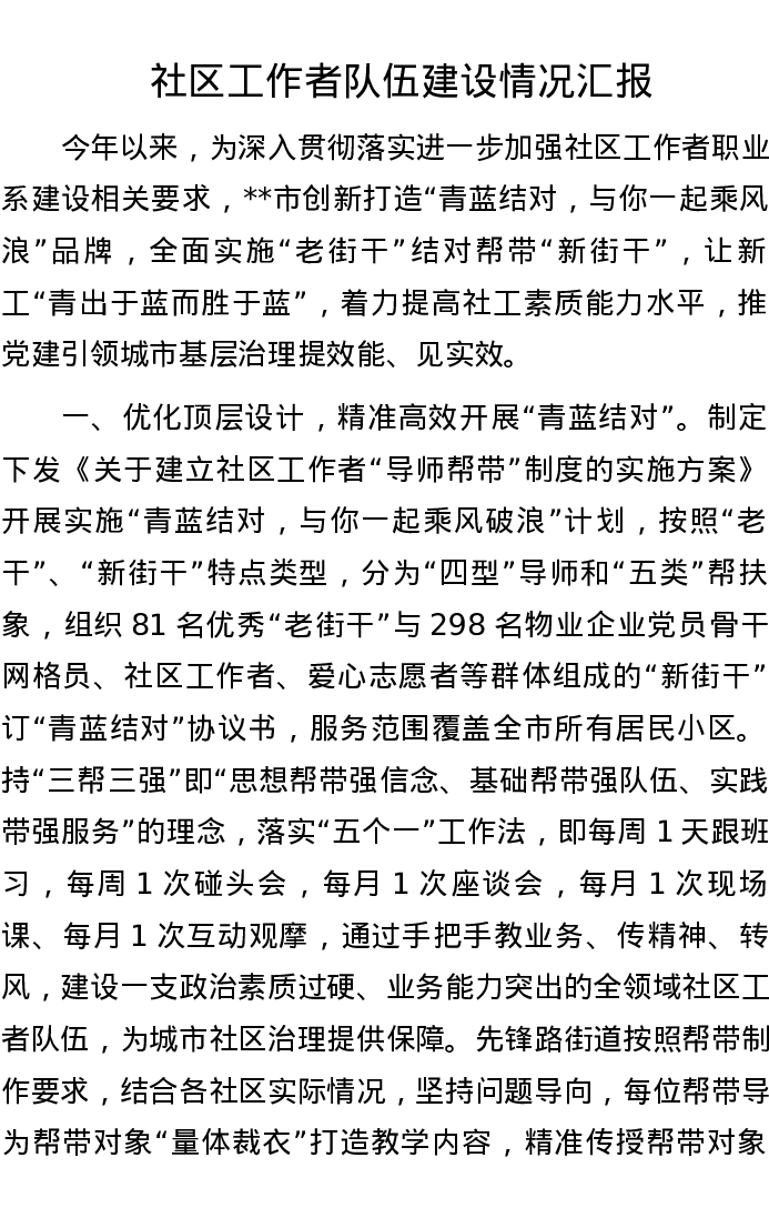 社区工作者队伍建设情况汇报
