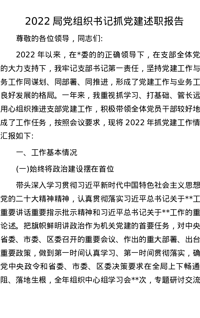 2022局党组织书记抓党建述职报告
