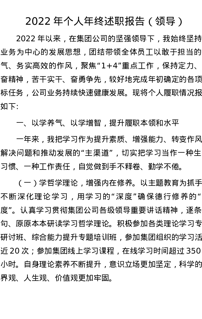 2022年个人年终述职报告(领导)