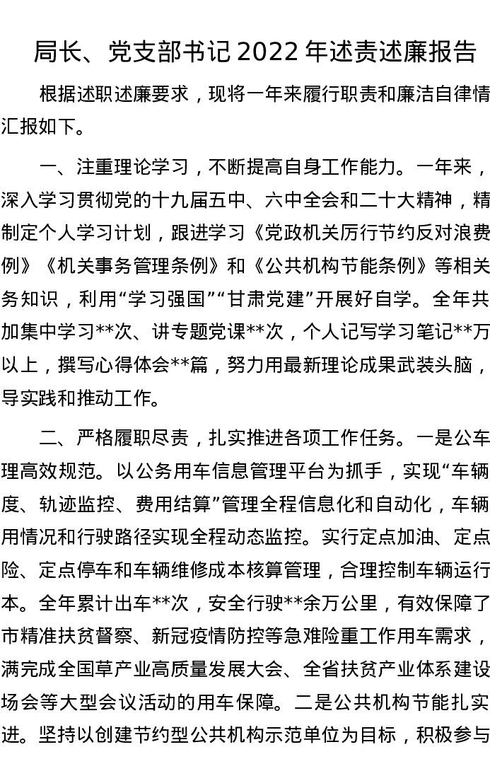 局长、党支部书记2022年述责述廉报告
