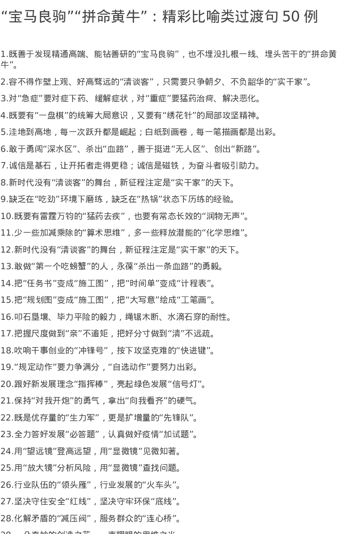 “宝马良驹”“拼命黄牛”:精彩比喻类过渡句50例