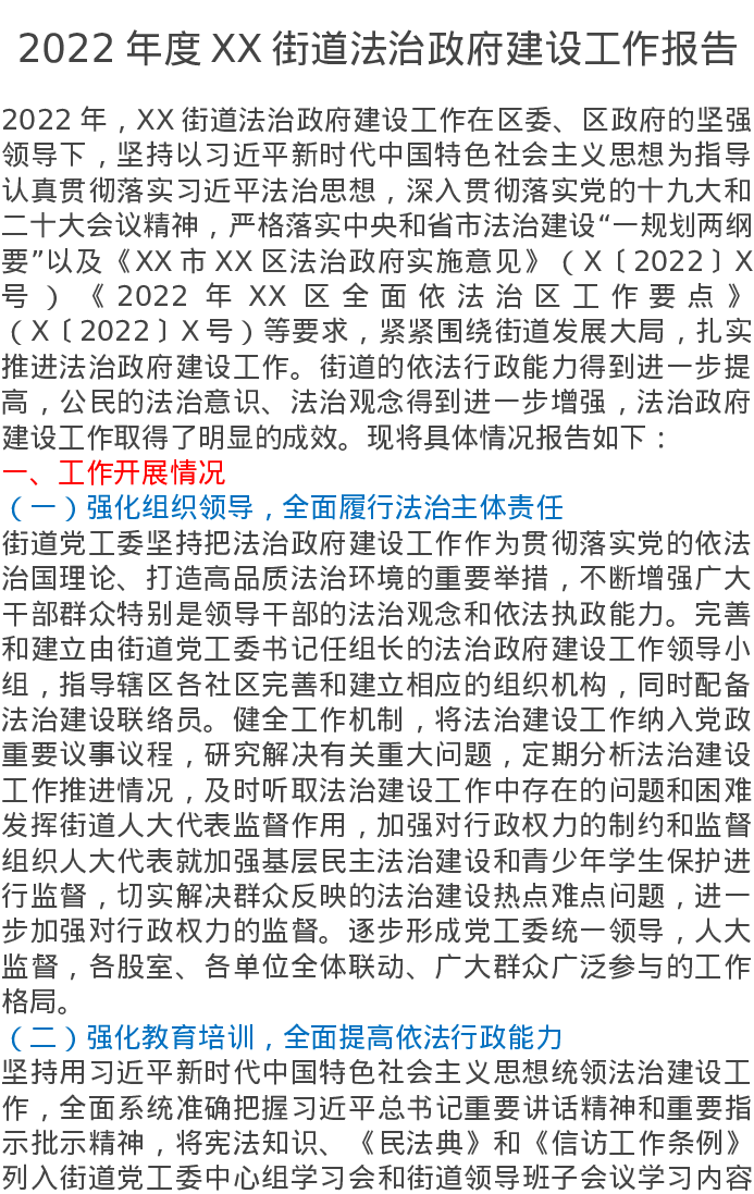 2022年度XX街道法治政府建设工作报告