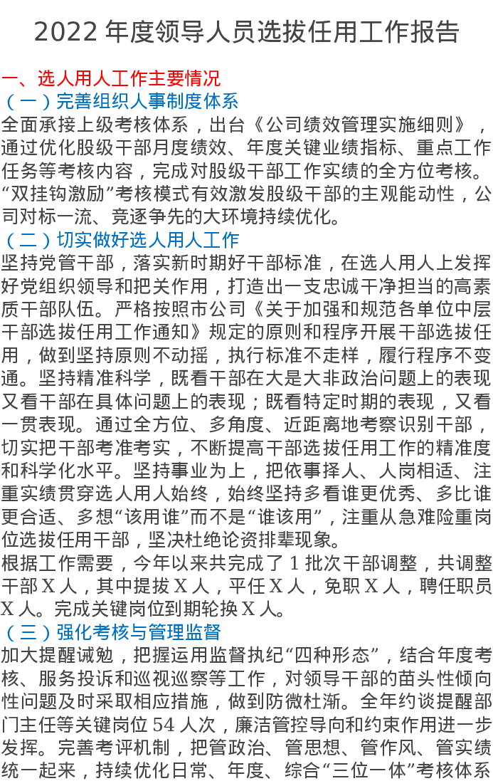 2022年度领导人员选拔任用工作报告