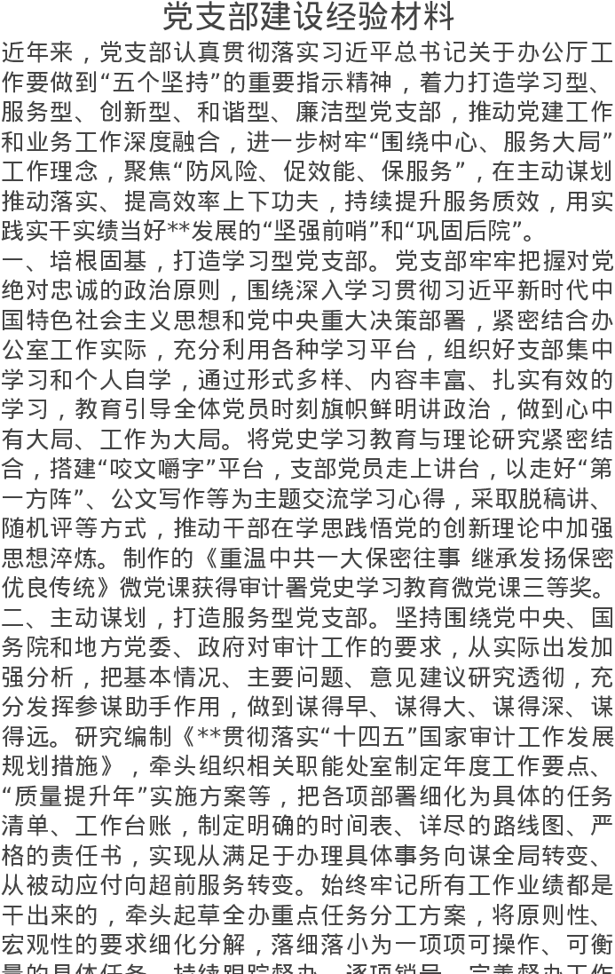 党支部建设经验材料