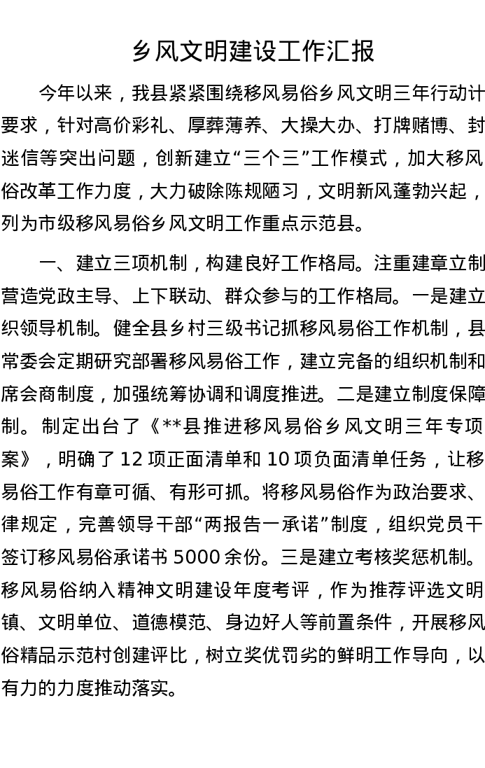 乡风文明建设工作汇报
