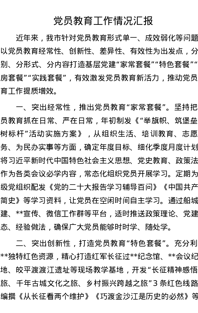 党员教育工作情况汇报