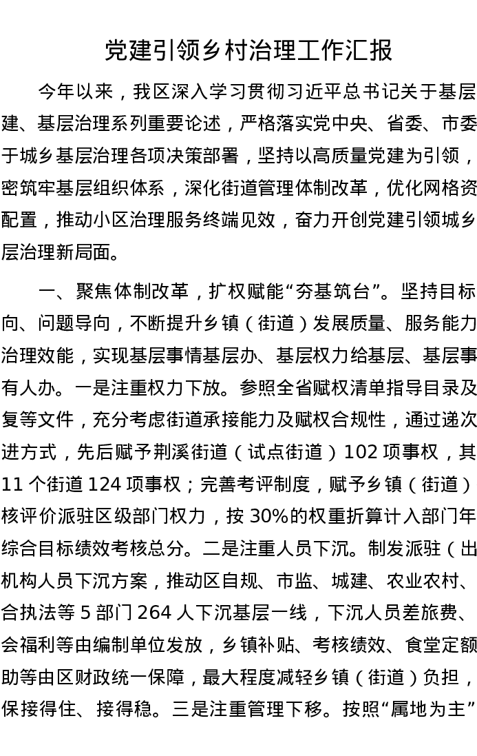 党建引领乡村治理工作汇报