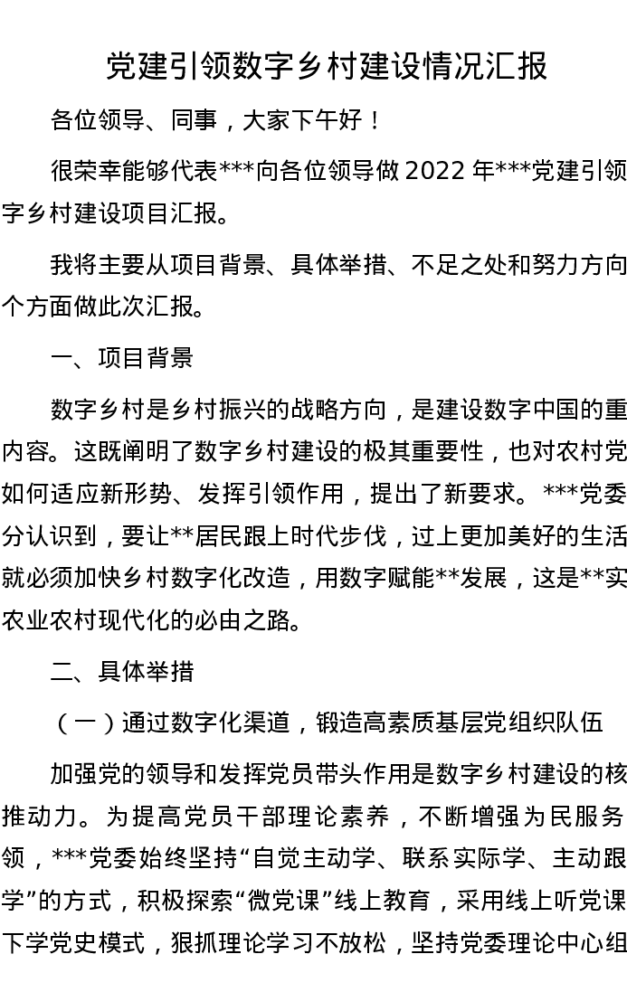 党建引领数字乡村建设情况汇报