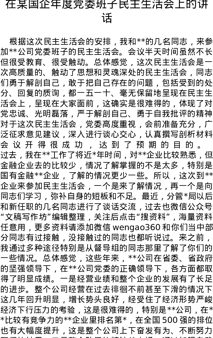 在某国企2022年度党委班子民主生活会上的讲话(六个带头方面)