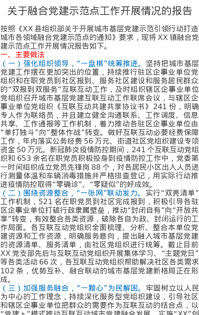 关于融合党建示范点工作开展情况的报告