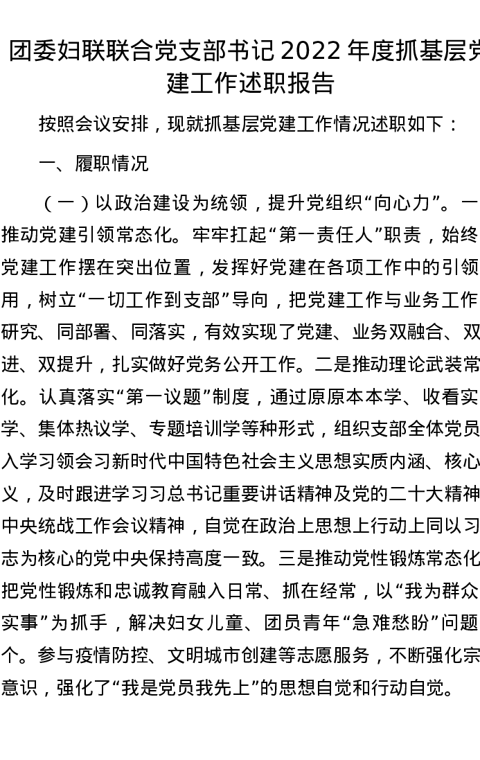 团委妇联联合党支部书记2022年度抓基层党建工作述职报告