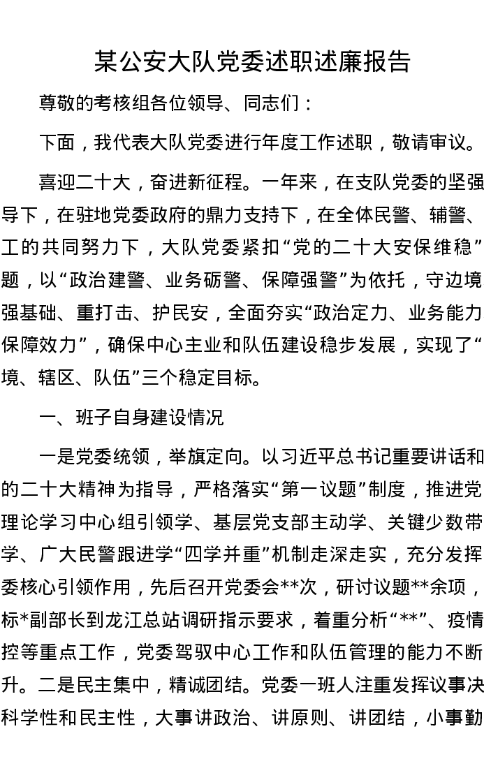 某公安大队党委述职述廉报告