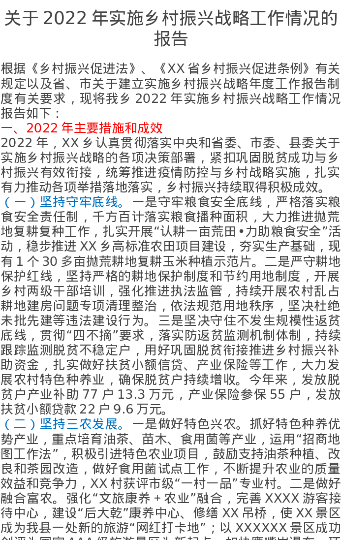 关于2022年实施乡村振兴战略工作情况的报告