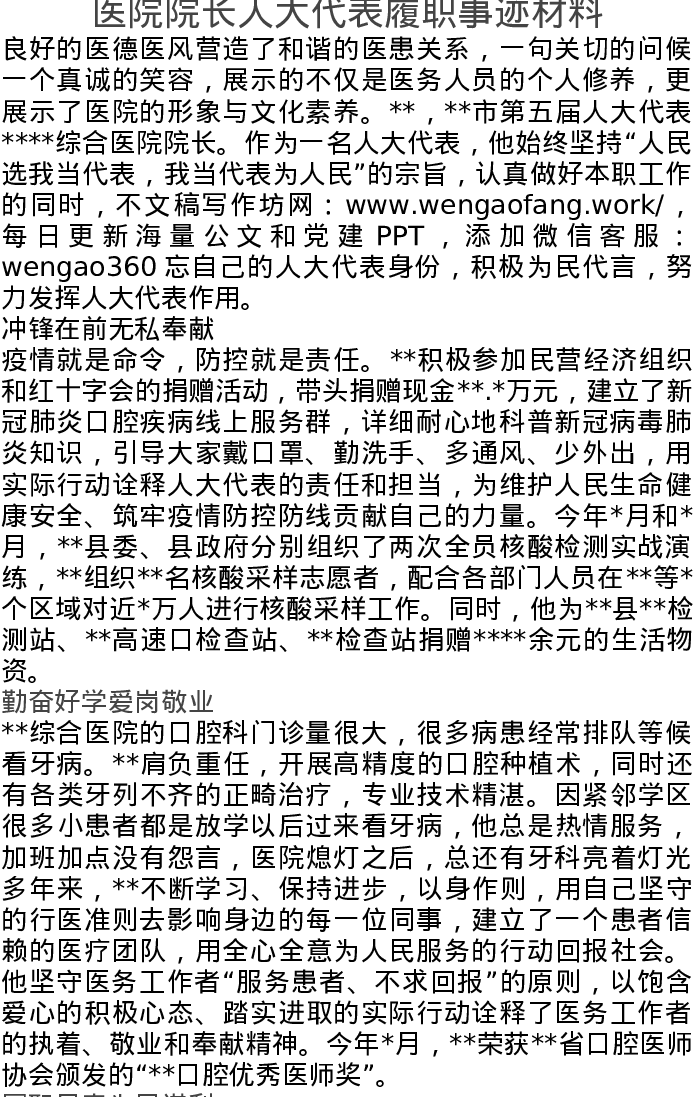 医院院长人大代表履职事迹材料