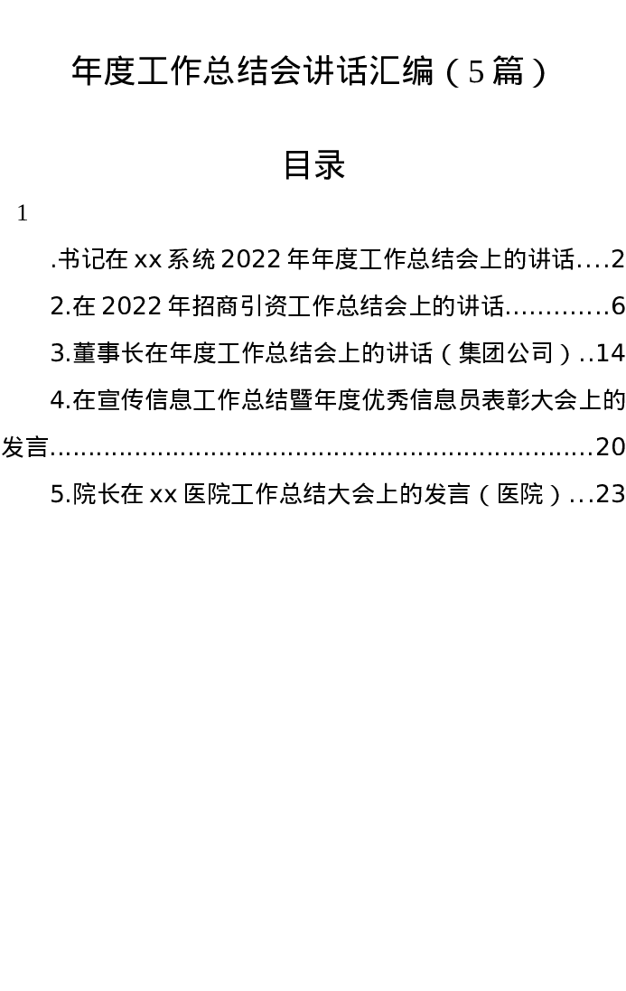 汇编:年度工作总结会讲话5篇