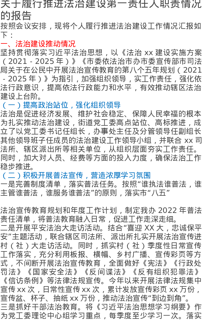 关于履行推进法治建设第一责任人职责情况的报告