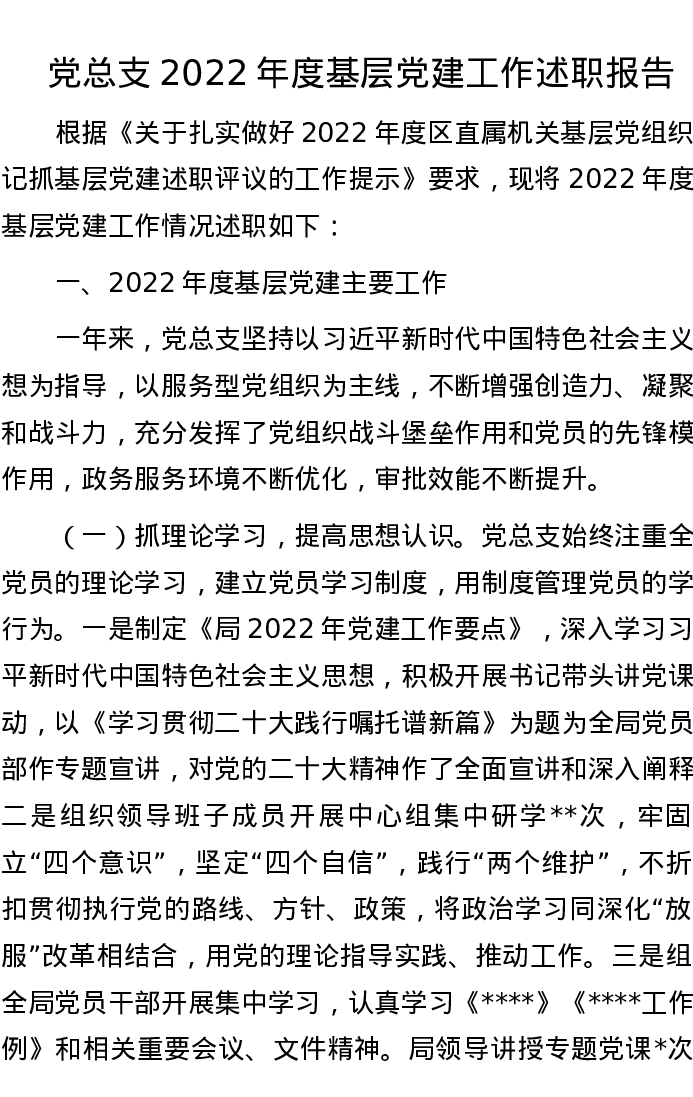 党总支2022年度基层党建工作述职报告