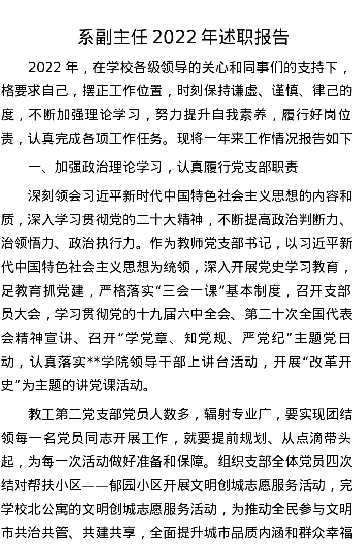 系副主任2022年述职报告