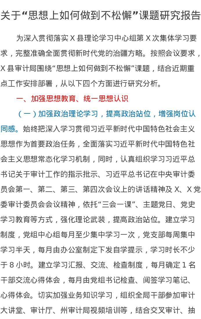 调研报告:关于“思想上如何做到不松懈”课题研究报告