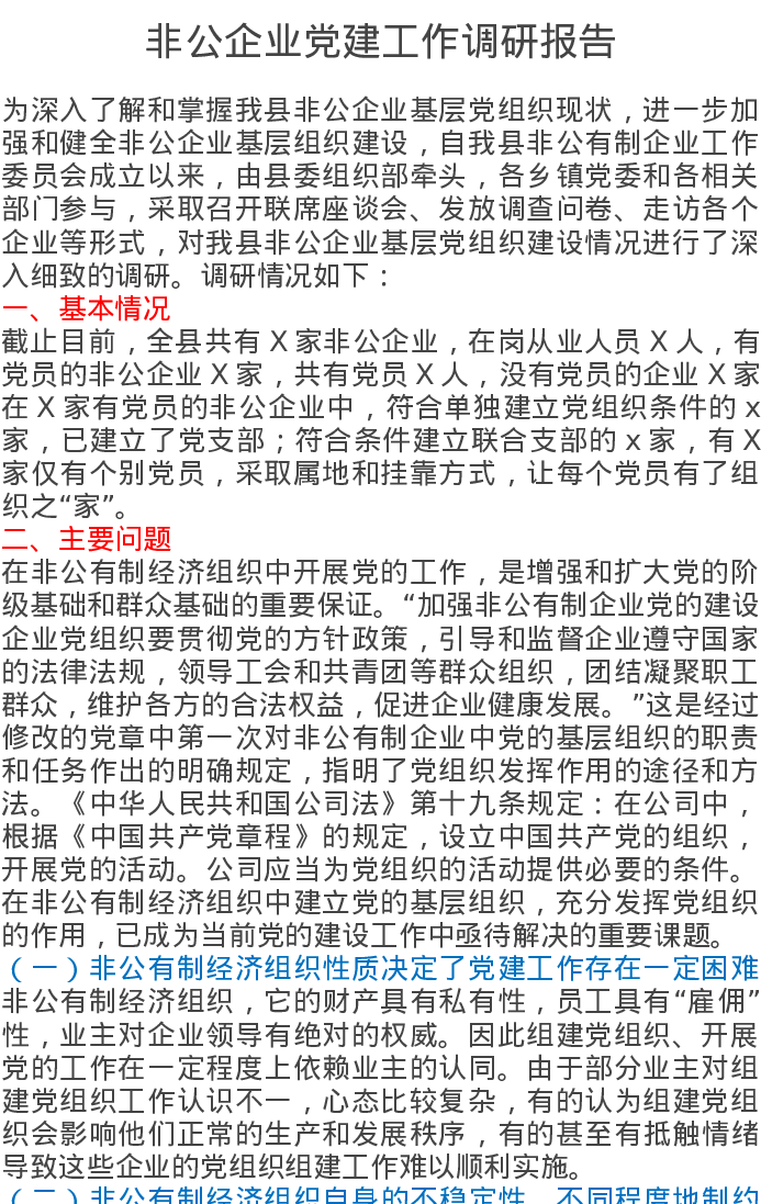 调研报告:非公企业党建工作调研报告