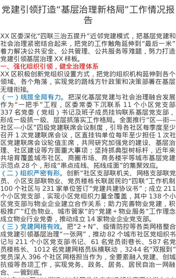 党建引领打造“基层治理新格局”工作情况报告
