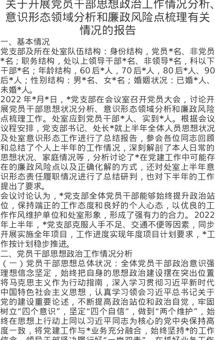 关于开展党员干部思想政治工作情况分析、意识形态领域分析和廉政风险点梳理有关情况的报告