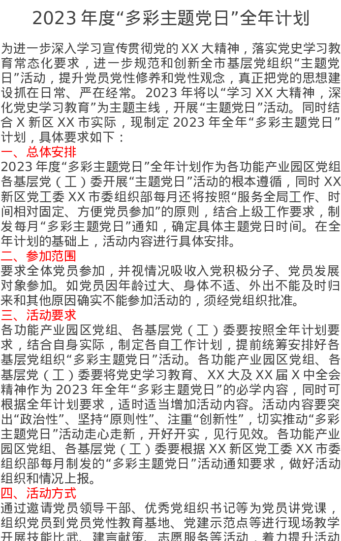 2023年度“多彩主题党日”全年计划
