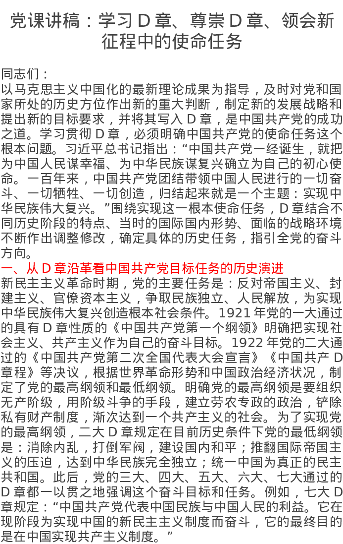 党课讲稿:学习党章、尊崇党章、领会新征程中的使命任务