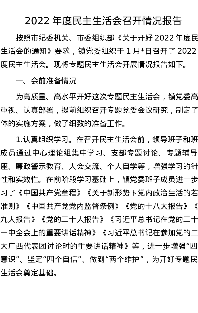 2022年度民主生活会召开情况报告 5227字