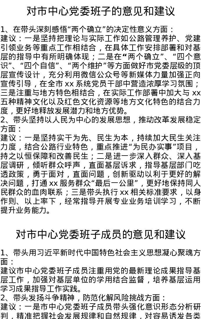 2022年度民主生活会征求意见表