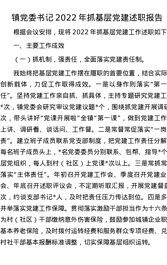 镇党委书记2022年抓基层党建述职报告