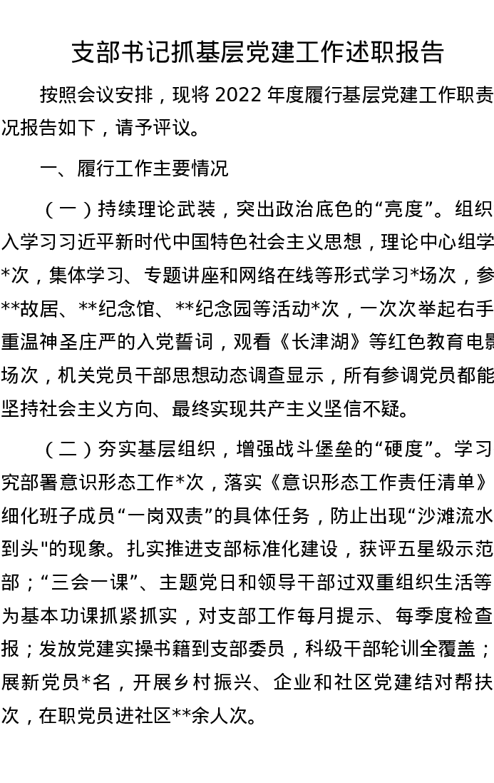支部书记抓基层党建工作述职报告
