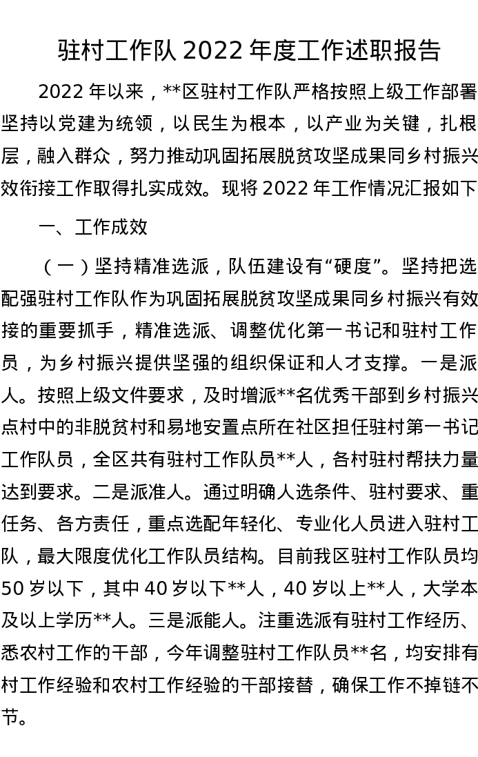 驻村工作队2022年度工作述职报告