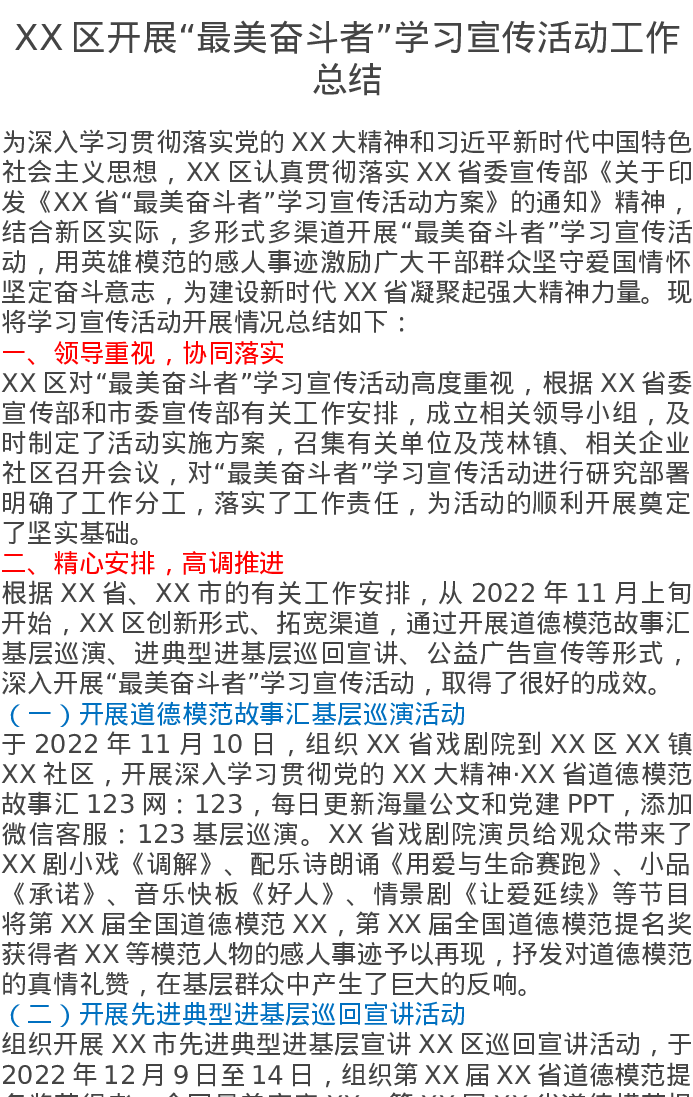 XX区开展“最美奋斗者”学习宣传活动工作总结