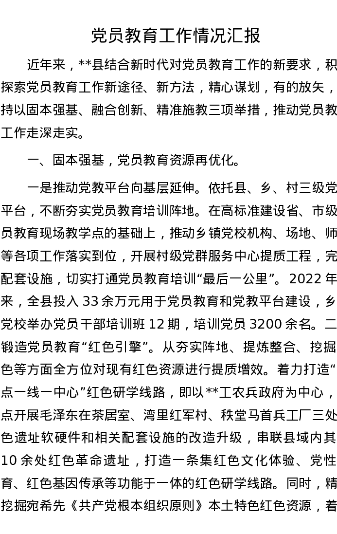 党员教育工作情况汇报