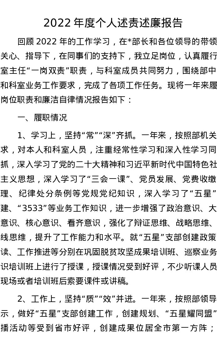 2022年度个人述责述廉报告