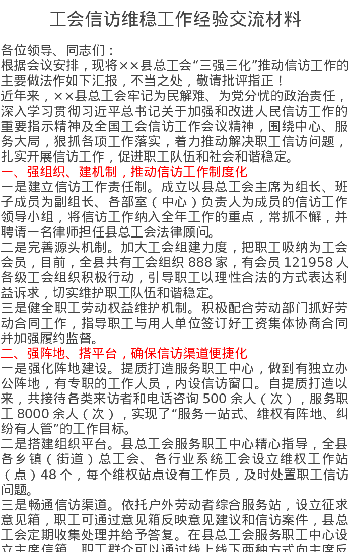 工会信访维稳工作经验交流材料