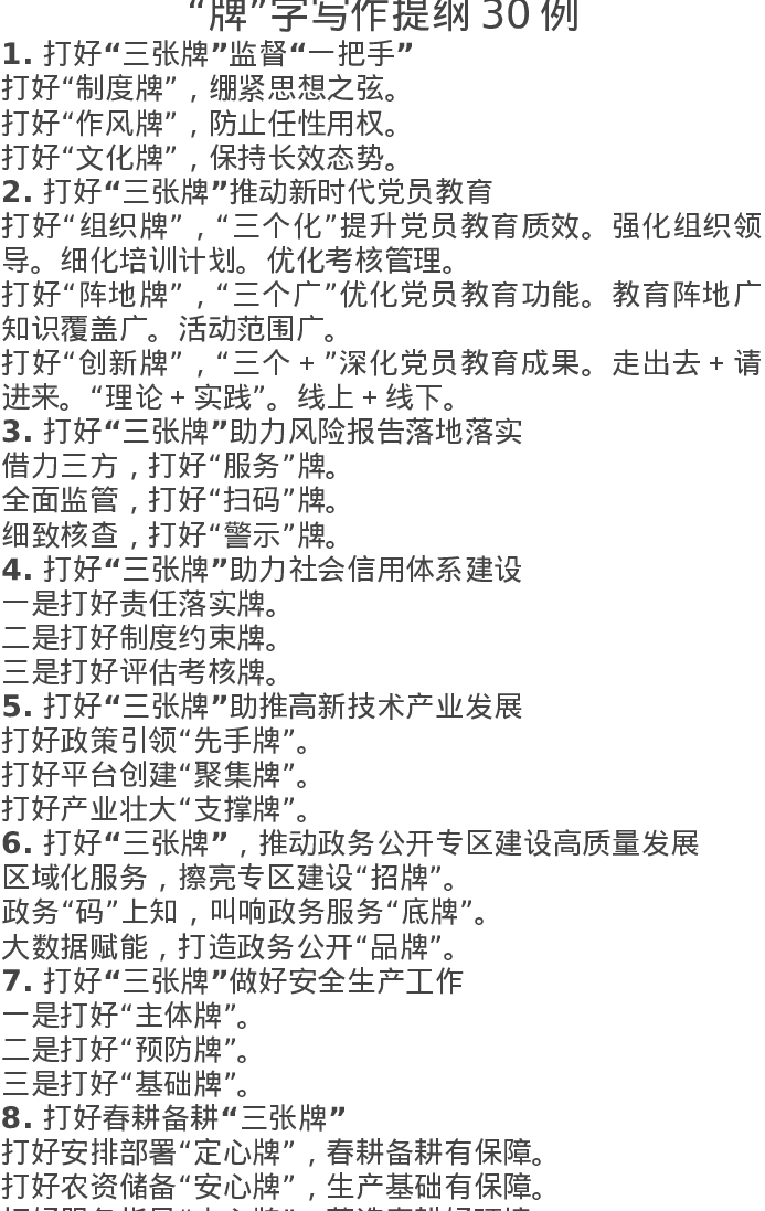 “牌”字写作提纲30例