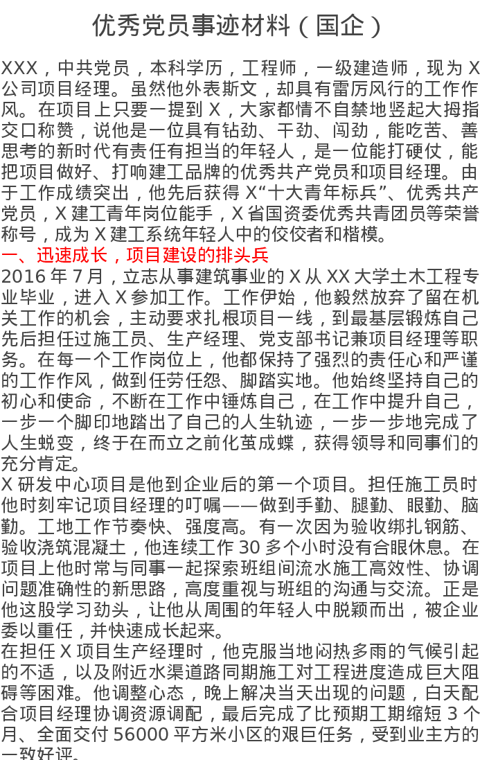 优秀党员事迹材料(国企)